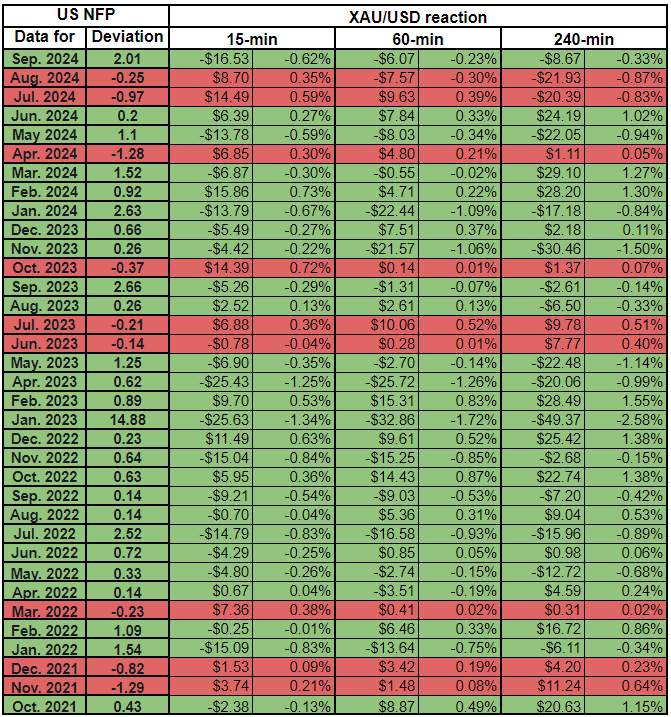 Previsión de las Nóminas no Agrícolas de octubre en EE.UU.: Análisis de la reacción del precio del Oro a las sorpresas del NFP