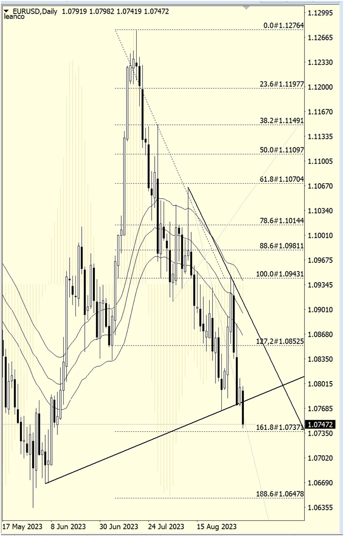 |Hoy día 5 de septiembre del año 2023, analizaremos el desarrollo de precios en el cruce Euro, con el Dólar americano, en su intervalo de tiempos diario.