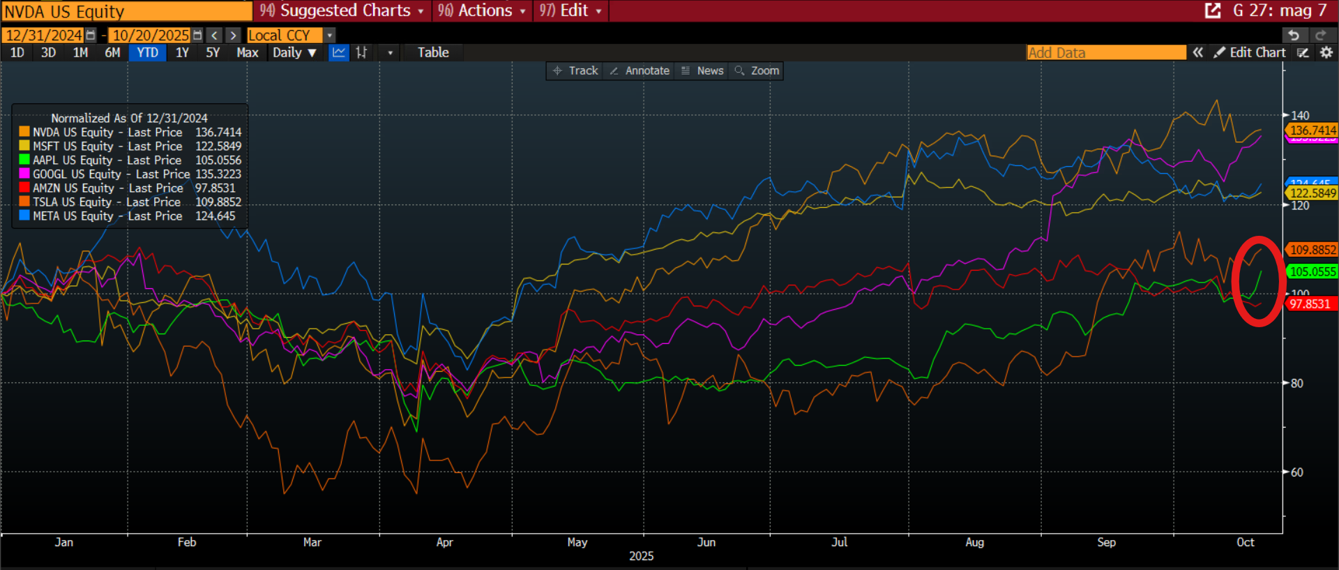 Gráfico 1: Apple se pone al día con el resto de los Magníficos 7