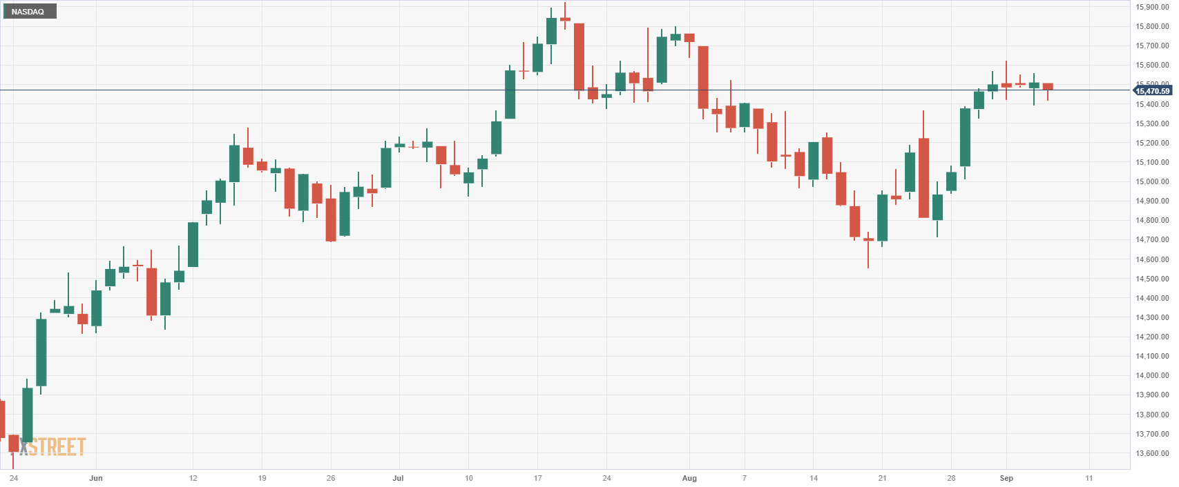 El Nasdaq se consolida por encima de los 15.400 puntos por quinto día consecutivo y se mantiene atrapado dentro de un rango a la espera del próximo catalizador, que podría llegar durante la sesión americana de hoy a través de la publicación del PMI de servicios ISM.