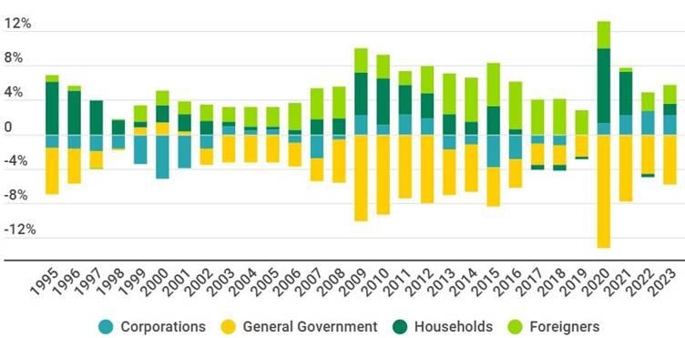 Gráfico 2: Préstamos/empréstitos netos del Reino Unido por sector como porcentaje del PIB