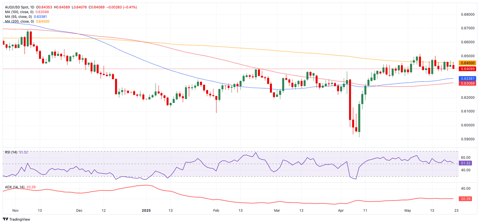 Técnicamente, el AUD/USD necesita una ruptura clara por encima de la SMA de 200 días en 0.6452 para restablecer el impulso alcista. Un movimiento sostenido por encima de este umbral podría allanar el camino hacia el máximo anual en 0.6514 (7 de mayo), con el pico de noviembre de 2024 en 0.6687 (7 de noviembre) actuando como un objetivo adicional al alza.