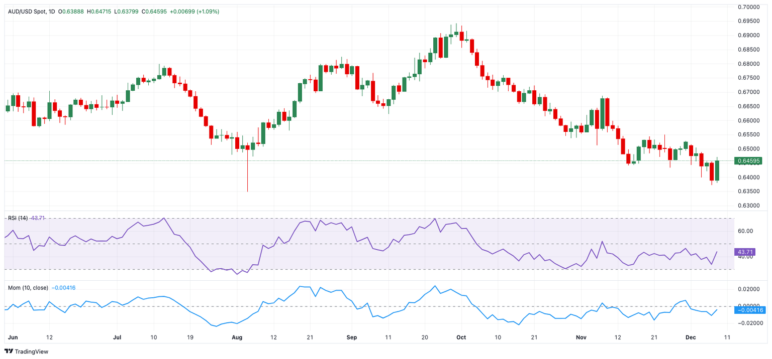 - El AUD/USD rebotó bruscamente y visitó la zona de 0.6470.