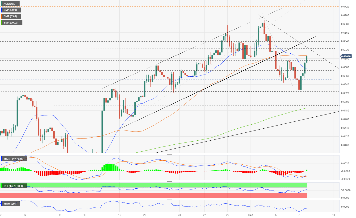 El par AUD/USD rebotó desde la media móvil simple (SMA) de 20 días y los mínimos de dos semanas en 0.6525, alcanzando niveles superiores a 0.6600. El fuerte rebote se produjo en medio de una mejora del sentimiento de los mercados y ante la debilidad del Dólar estadounidense.