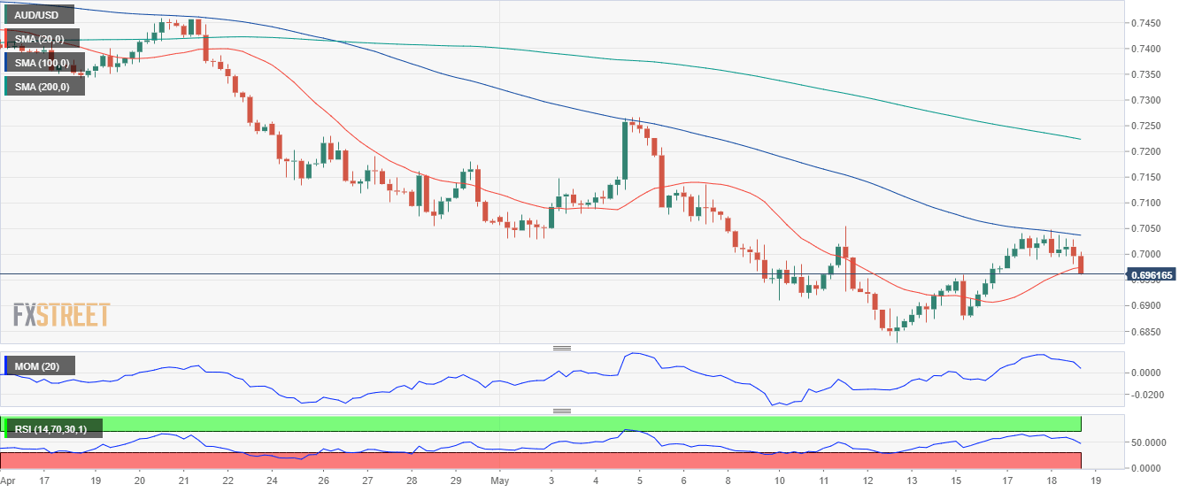 - El AUD/USD giró a la baja a corto plazo y podría volver a probar el mínimo del año en 0.6828.