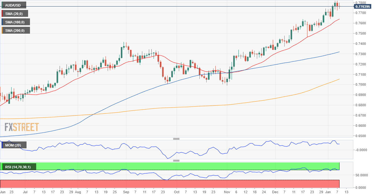 - El AUD/USD puede corregir debido a condiciones extremas de sobrecompra, pero los alcistas siguen liderando.