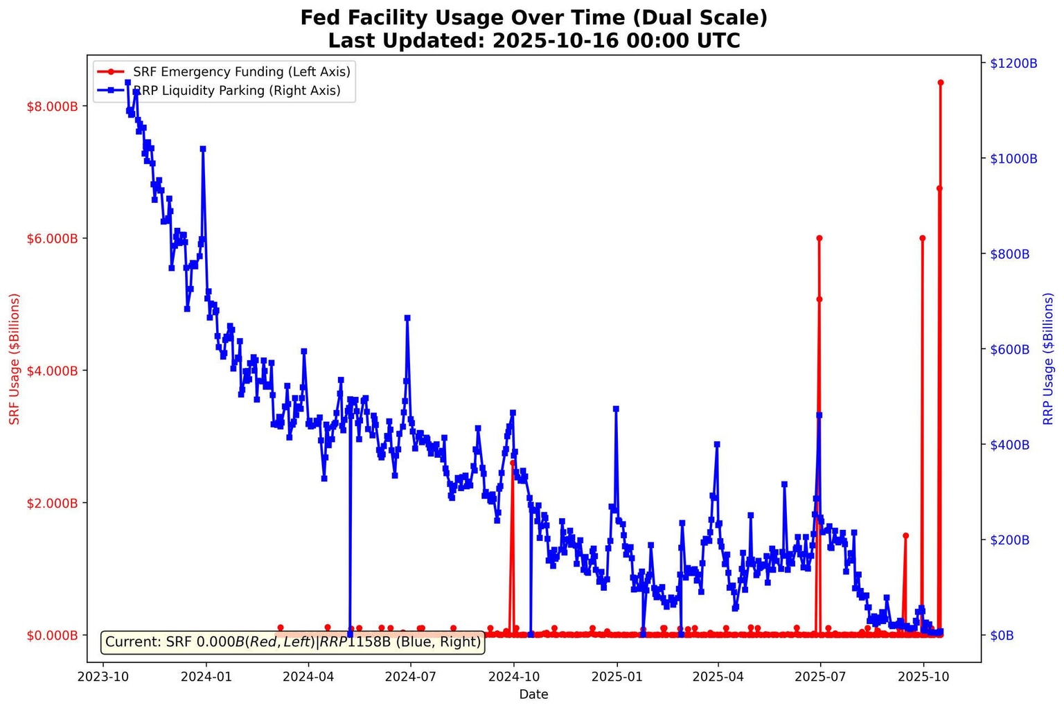En el siguiente gráfico, se puede ver parte de la presión del mercado por liquidez desencadenada por algunos préstamos problemáticos en el sector bancario regional. La línea roja de la Instalación de Repos (SRF) se disparó a 8.000 millones de dólares. Esta instalación es la ventana de emergencia de la Fed para que los bancos y los distribuidores primarios pidan dinero cuando hay escasez de liquidez. Sin duda, parece algo a tener en cuenta.