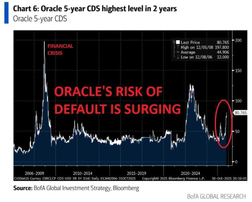 Tomen nota: el gráfico de CDS de Oracle está comenzando a subir nuevamente. Aún no está en niveles de crisis, pero ciertamente es una tendencia a tener en cuenta.