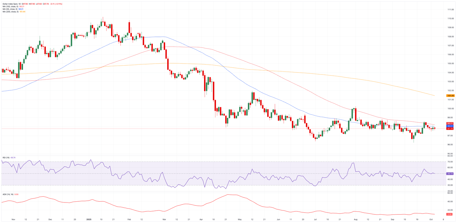 La presión sobre el billete verde ya se estaba acumulando a medida que los operadores descontaban recortes adicionales de tasas de la Reserva Federal (Fed), y el cierre del gobierno federal de EE.UU. solo añadió incertidumbre, amargando el sentimiento en torno al dólar.