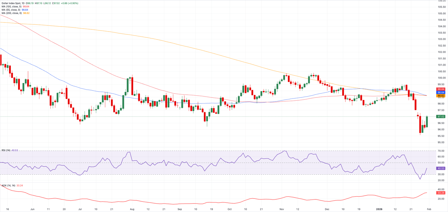 De hecho, el Índice del Dólar estadounidense (DXY) se basó en la caída de la semana anterior y retrocedió a la región de 95.50, un área que no se visitaba desde febrero de 2022. Sin embargo, el billete verde logró recuperar la mayor parte de ese retroceso tras la reunión de la Reserva Federal (Fed) y después del anuncio del presidente Trump sobre Kevin Warsh como sucesor de Jerome Powell al frente de la Fed.