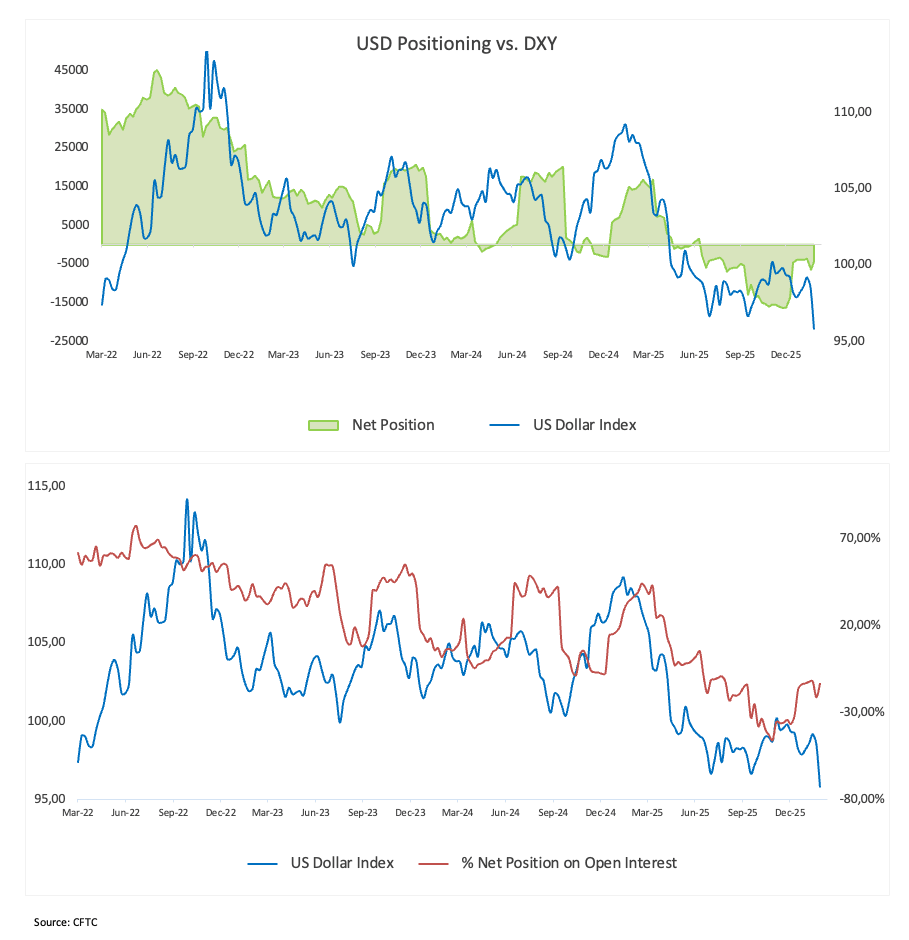 En la parte inferior, la contención inmediata se encuentra en el mínimo de 2026 en 95.56 (27 de enero) antes del suelo de febrero de 2022 en 95.13 y la base de 2022 en 94.62 (14 de enero).