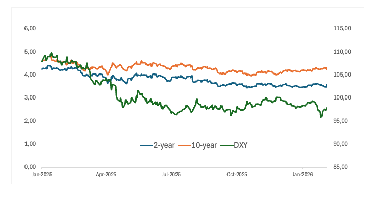 Mientras tanto, la mejora en el índice ha llegado en conjunto con la evaluación de los inversores sobre cómo podría ser una Reserva Federal (Fed) bajo Kevin Warsh. Los participantes del mercado continúan considerando un par de recortes de tasas de interés en el futuro, pero la probabilidad de un relajamiento más agresivo parece poco probable, al menos por ahora.