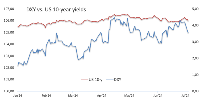 Por otro lado, la crucial SMA de 200 días en 104.49 podría proporcionar algo de contención temprana antes del mínimo de junio de 103.99 (4 de junio). Una caída más profunda podría traer de vuelta al enfoque el mínimo semanal de 103.88 (9 de abril), antes del mínimo de marzo de 102.35 (8 de marzo) y el fondo de diciembre de 100.61 (28 de diciembre), todo antes de la zona de conflicto psicológico de 100.00.