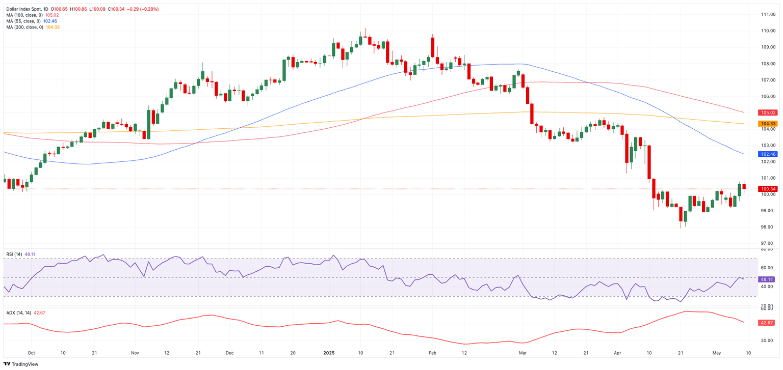 El Dólar estadounidense registró una tercera ganancia semanal consecutiva, continuando su gradual rebote desde los mínimos de varios años de mediados de abril. Finalmente, el Índice del Dólar estadounidense (DXY) logró avanzar más allá del nivel clave de 100.00, un umbral psicológico que aún no ha sido superado de manera convincente.