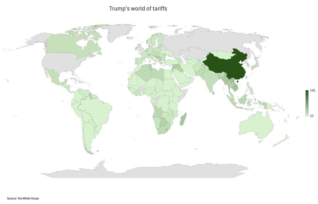 Bajo esta nueva política amplia, se impondrá un arancel base universal del 10% sobre todas las importaciones, con recargos adicionales específicos por país.
