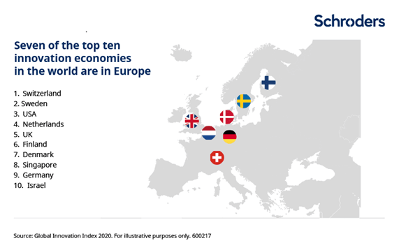Esperamos que 2021 sea el año en el que la percepción obsoleta de la inversión en Europa empiece a cambiar. Existe la idea de que Europa es simplemente una apuesta de crecimiento global y que no hay nada particularmente nuevo o innovador. Pero esto no es así.
