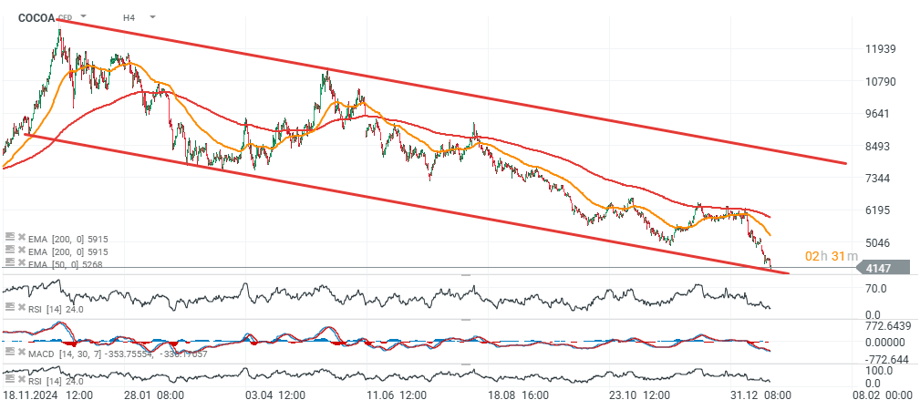 Este viernes, el cacao en la bolsa ICE de Estados Unidos registró una caída de más del 7% ante los temores de un posible superávit de oferta en la temporada 2025/2026, junto con una liquidación generalizada de posiciones largas. En la temporada pasada, la historia era distinta: predominaba el temor a una posible escasez por las malas condiciones climáticas. Sin embargo, hoy se observan perspectivas de producción significativamente mejores, principalmente en África Occidental (Costa de Marfil y Ghana) y también en Sudamérica. A esto se suma una demanda débil por parte de los fabricantes.