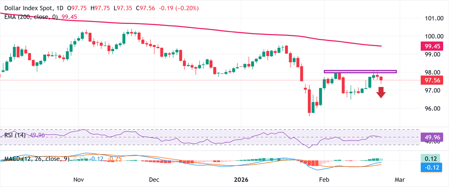 Mirando los aspectos técnicos, el fracaso de la semana pasada cerca de la marca de 98.00 constituye la formación de un doble techo bajista en el gráfico diario. Esto se suma a los recientes fracasos repetidos cerca de la media móvil exponencial (SMA) de 200 días y valida la perspectiva negativa. Sin embargo, los traders bajistas podrían optar por esperar una ruptura sostenida y aceptación por debajo del soporte horizontal de 96.80-96.75 antes de abrir nuevas posiciones.