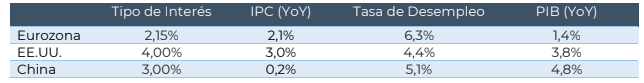 En Europa, los salarios negociados en convenios colectivos muestran una clara moderación tras crecer ahora un 1,9% frente al 4% previo. Esta contención salarial contribuye a estabilizar los costes laborales y refuerza la expectativa de que el BCE pueda mantener los tipos cerca del 2%, nivel considerado neutral, en línea con su objetivo de inflación del 2%.