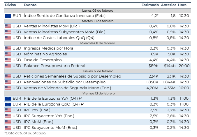 En el arranque de la presente semana, el comportamiento del EUR/USD ha girado claramente al alza. El cruce abrió en 1.1814 y avanza hasta la zona de 1.1913, lo que supone una apreciación del +0.78%. El movimiento responde a un aumento de la presión vendedora sobre el Dólar estadounidense, intensificada tras la fuerte corrección del USD/JPY. La reacción del mercado a la victoria por mayoría absoluta de Takaichi en Japón, junto con un mayor escrutinio sobre la sostenibilidad de su política fiscal, ha provocado un ajuste significativo en el cruce USDJPY, debilitando al billete verde de forma transversal. Este reajuste ha tenido un efecto sobre el dólar, facilitando la ruptura del nivel psicológico de 1.1900 en el EUR/USD y presionando a la baja al índice dólar DXY, que pasó de 97.70 en la apertura semanal a 96.94, acumulando una caída del -0.71%.