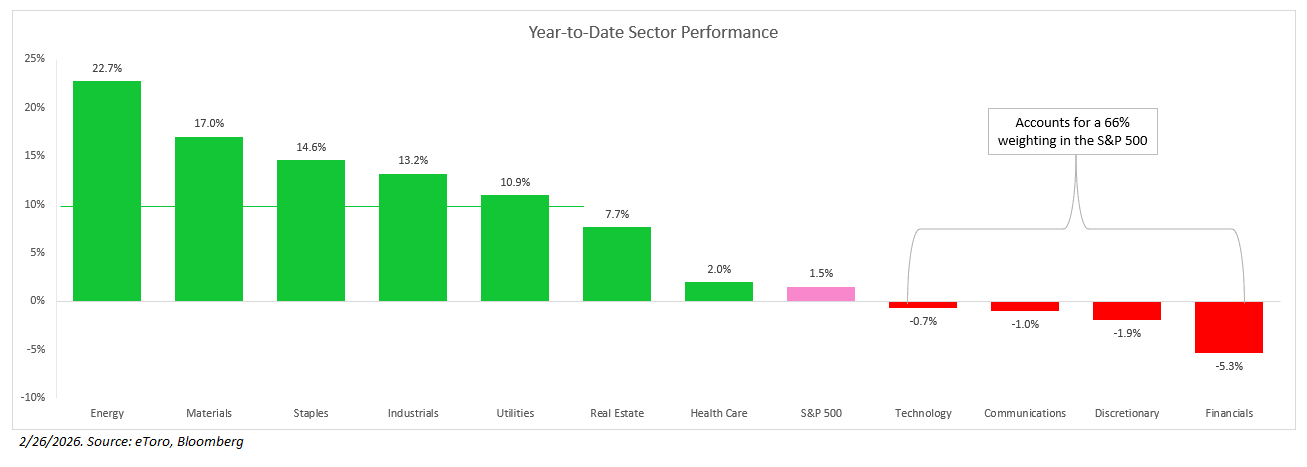 Muchos inversores se preguntan con curiosidad por la dispersión de operaciones de este año, pero la bifurcación del mercado es un arma de doble filo. En 2026, se espera que 10 de los 11 sectores del S&P 500 registren un crecimiento positivo de las ganancias, siendo el sector energético el factor imponderable. Ese tipo de expansión, con una mejora en la acción de los precios en todos los sectores, es constructiva. En otras palabras, este no es un mercado donde solo entre 7 y 10 acciones sean las que más ganen, como vimos en 2023.