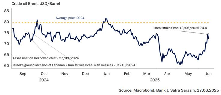 El intercambio de ataques con misiles entre Irán e Israel en los últimos cinco días ha hecho subir los precios del petróleo cerca de un 6%. Los mercados reaccionaron inicialmente con aversión al riesgo, pero se recuperaron el lunes al considerar los inversores que era improbable que la escalada supusiera un duro golpe para la economía mundial. Sin embargo, el sentimiento de aversión al riesgo regresó el martes por la mañana, después de que Donald Trump hiciera unas duras declaraciones en la reunión del G7 (Gráfico 1).