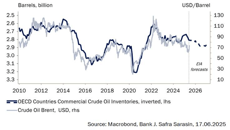 Con todo, es probable que la persistencia de la incertidumbre y/o una escalada de las hostilidades mantengan elevada la prima de riesgo de los precios del petróleo. El Gobierno israelí parece decidido a infligir un daño duradero al programa nuclear iraní, lo que probablemente incluya ataques a las instalaciones de Fordow, fuertemente fortificadas, una medida que podría no ser factible sin el respaldo de Estados Unidos. Y, si Irán se siente cada vez más acorralado, podría intentar dañar las infraestructuras petrolíferas como forma de ganar influencia en futuras negociaciones con Estados Unidos.