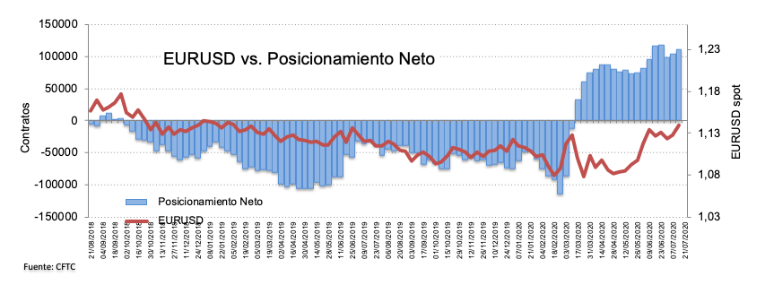 Estos últimos días, sin embargo, se ha agregado como determinante en torno al euro, las negociaciones en Bruselas entre los líderes de la Unión Europea sobre el fondo de rescate, que posibilitará a las economías más castigadas por la pandemia encontrar fondos extra. Sin embargo, existen férreas líneas contrapuestas entre los países llamados “frugales” (Holanda, Austria, Suecia, Dinamarca) y el resto de los miembros, siempre en torno al reparto entre subvenciones y préstamos. De todas maneras, hasta ahora, sólo se vislumbran duras negociaciones y se habla ya que la cifra final estaría por debajo de los €750,000 millones originalmente anunciados. El debate está previsto para continuar hoy a partir de las 14GMT.