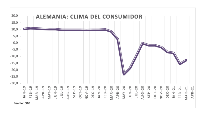 En el calendario de hoy, el clima del consumidor en Alemania medido por GfK ha mejorado a -12.9 para el mes de febrero a pesar de permanecer en el territorio negativo.