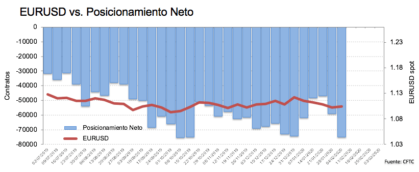 En otro frente, la comunidad especulativa ha incrementado sus posiciones netas vendedoras en el euro al máximo nivel desde mediados de octubre de 2019, de acuerdo con el último reporte de posicionamiento de CFTC a la semana finalizada el 4 de febrero.