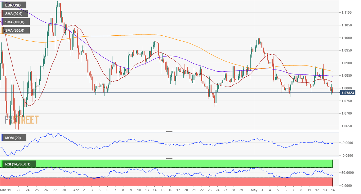 - EUR/USD bajo presión por debajo de 1.0800, bajista por debajo de 1.0760.