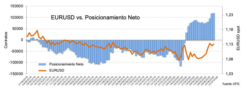 Desde la comunidad especulativa, el último reporte de posicionamiento de CFTC nota que las posiciones compradoras netas en el euro han trepado al máximo nivel desde comienzos de mayo de 2018 (durante la semana finalizada el 23 de junio).