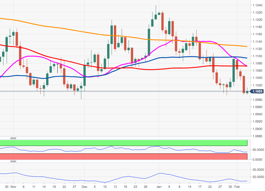 EUR/USD permanece bajo presión alrededor de 1.1000