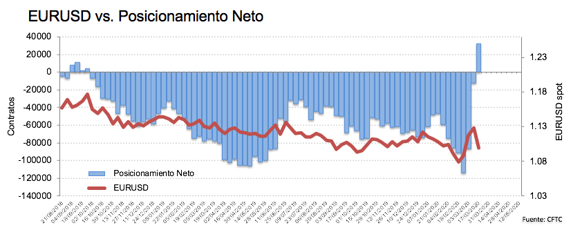 En otro frente, la comunidad especulativa ahora tiene una visión positiva del euro, ya que las posiciones netas compradoras han resurgido por primera vez desde fines de septiembre de 2018, durante la semana finalizada el 17 de marzo, de acuerdo al último reporte de CFTC.