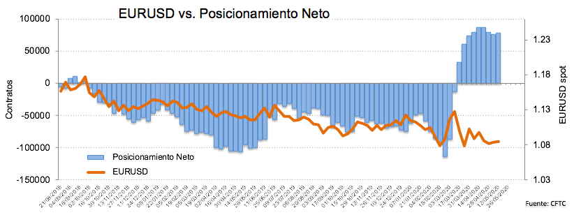 Desde la comunidad especulativa, las posiciones compradoras netas en euro han trepado al máximo de dos semanas durante la semana finalizada el 12 de mayo y siempre de acuerdo con el último reporte de posicionamiento de CFTC. La sólida posición de la cuenta corriente de la eurozona mantiene las tendencia bajista en el par algo contenida, al tiempo que el gradual retorno a la actividad económica normal también parece dar algo de oxígeno al euro.