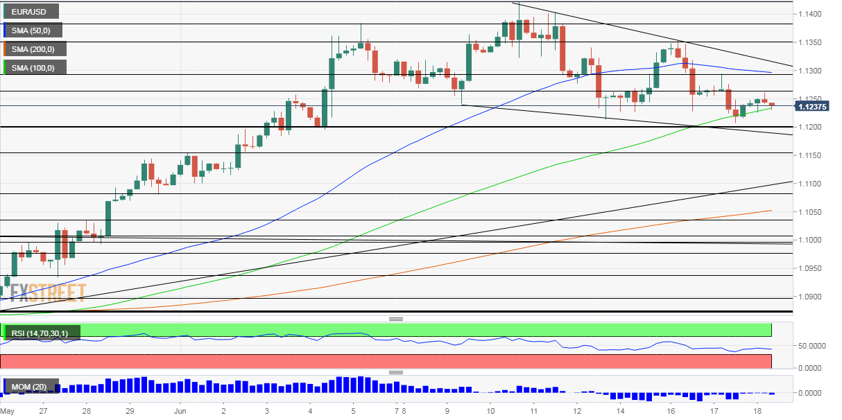 El impulso en el gráfico de cuatro horas se inclina marginalmente a la baja y el EUR/USD está luchando por mantenerse en el promedio móvil simple de 100. El par de divisas ha estado estableciendo mínimos más bajos, como sugiere la tendencia bajista. En general, los osos tienen una ventaja, al menos a corto plazo.