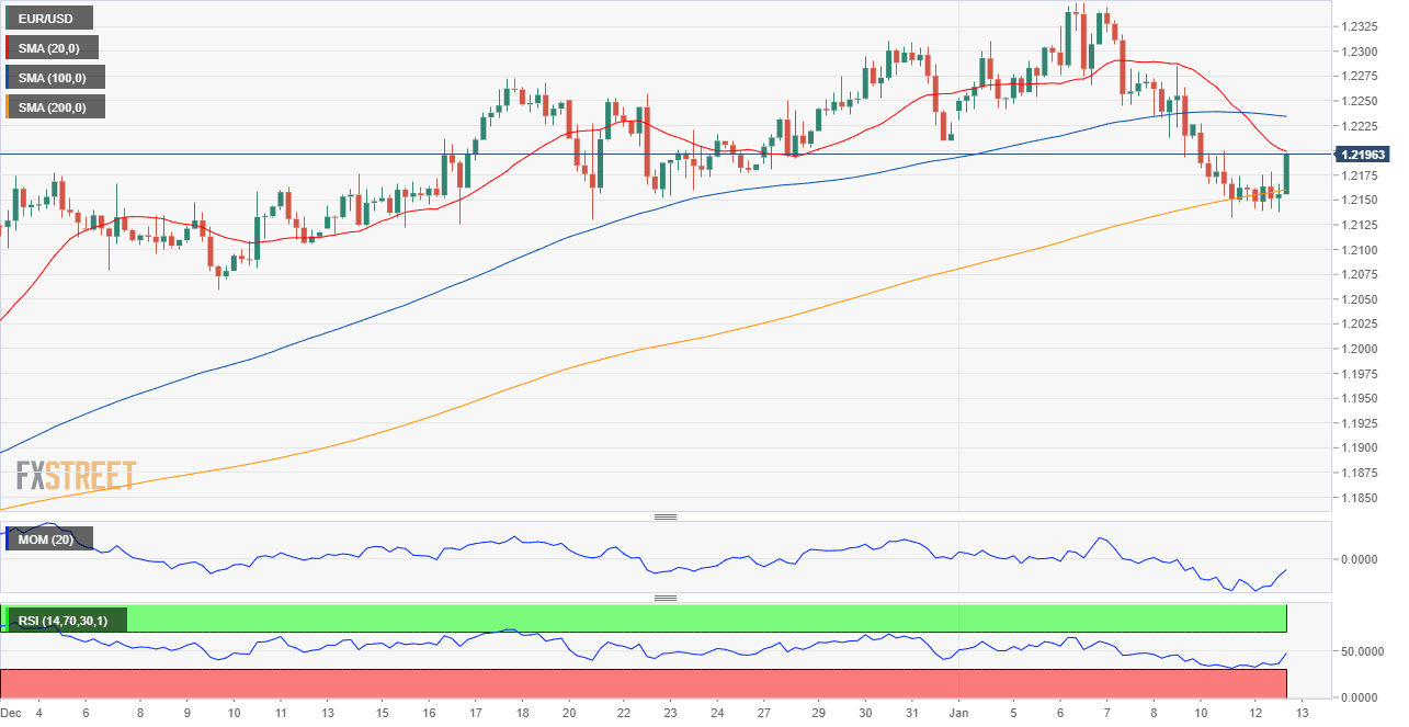 El par EUR/USD todavía está en riesgo de caer, a pesar de cotizar cerca de sus máximos diarios en la zona de precios de 1.2190. El gráfico de 4 horas muestra que una media móvil simple de 200 ligeramente alcista continúa proporcionando soporte dinámico intradiario, aunque el par permanece por debajo de una media móvil simple de 20 firmemente bajista. Los indicadores técnicos se han recuperado aún más de las lecturas de sobreventa, pero han perdido fuerza direccional dentro de niveles negativos, lo que indica un interés de compra limitado. Es más probable que se produzcan caídas adicionales en una ruptura por debajo de 1.2125, el nivel de soporte inmediato.