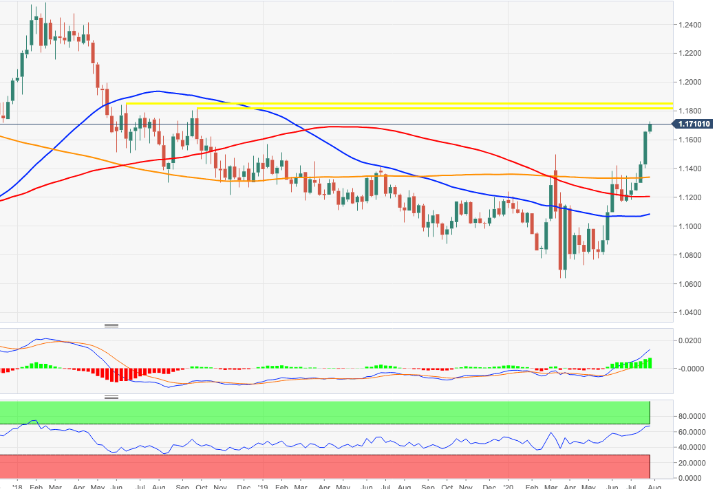 Otra jornada y un nuevo máximo en EUR/USD. Esta vez el par ha superado la barrera clave en 1.1700 para registrar nuevos máximos del año en la cercanía de 1.1720, area visitada por última vez en septiembre de 2018 y siempre con el contexto marcado por una firme tónica vendedora en torno al billete verde.