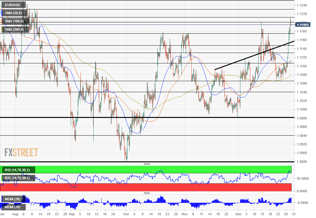 Finalmente vemos algo de acción tanto en volatilidad como en precio en un año frustrante en el comercio del EUR/USD que está terminando con una nota al alza. El par de divisas más popular del mundo ha superado la zona 1.12, alcanzando los niveles más altos desde principios de agosto.