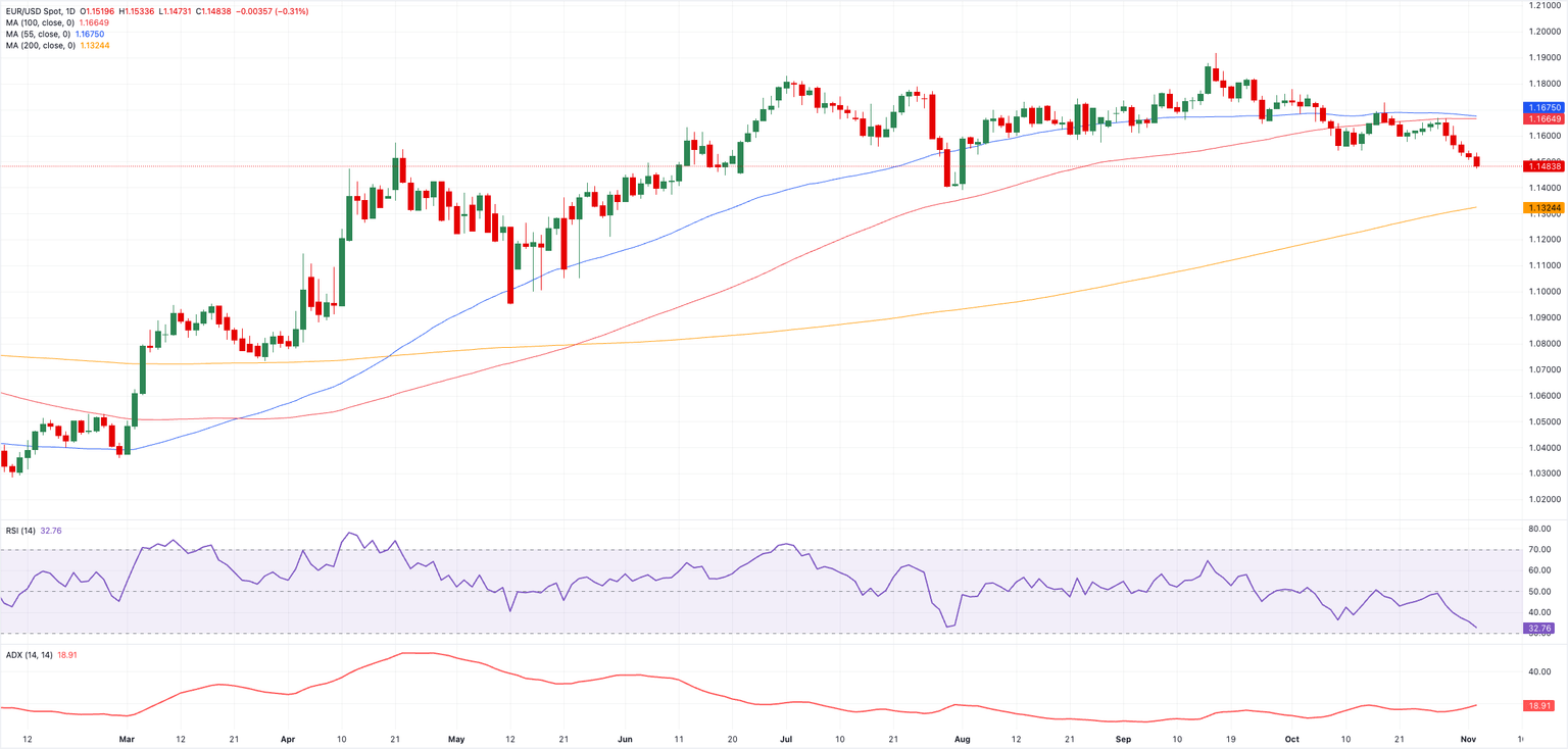 El EUR/USD extiende su caída, rompiendo por debajo del nivel clave de 1.1500 y tocando nuevos mínimos de tres meses tras cinco caídas diarias consecutivas.