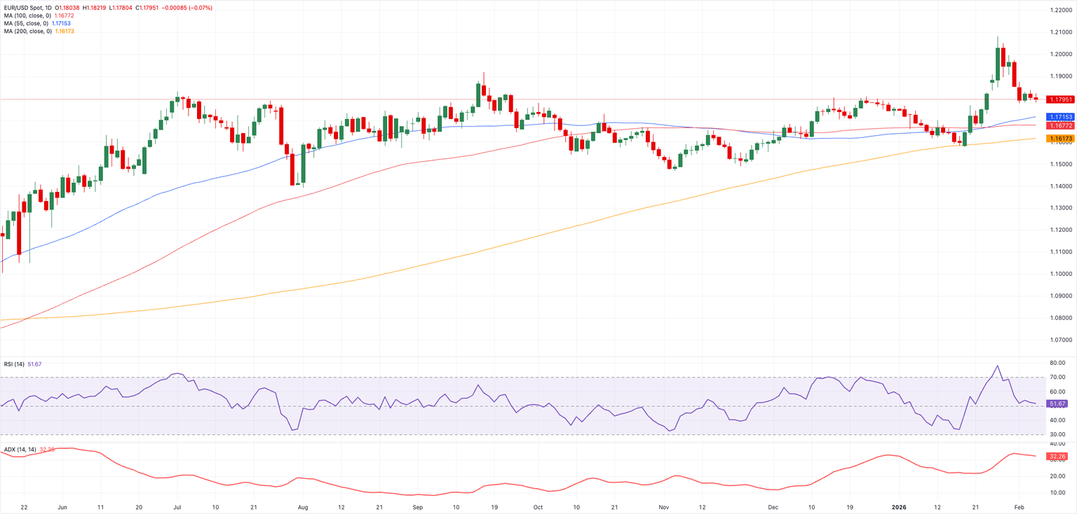 La continuación de la presión a la baja podría motivar al EUR/USD a desafiar la base de febrero en 1.1775 (2 de febrero). Una vez que esta región se limpie, el spot podría visitar las SMA transitorias de 55 días y 100 días en 1.1707 y 1.1677, respectivamente, antes de la clave SMA de 200 días en 1.1614. Abajo de aquí se encuentra el valle de noviembre de 2025 en 1.1468 (5 de noviembre) antes del mínimo de agosto de 2025 en 1.1391 (1 de agosto).