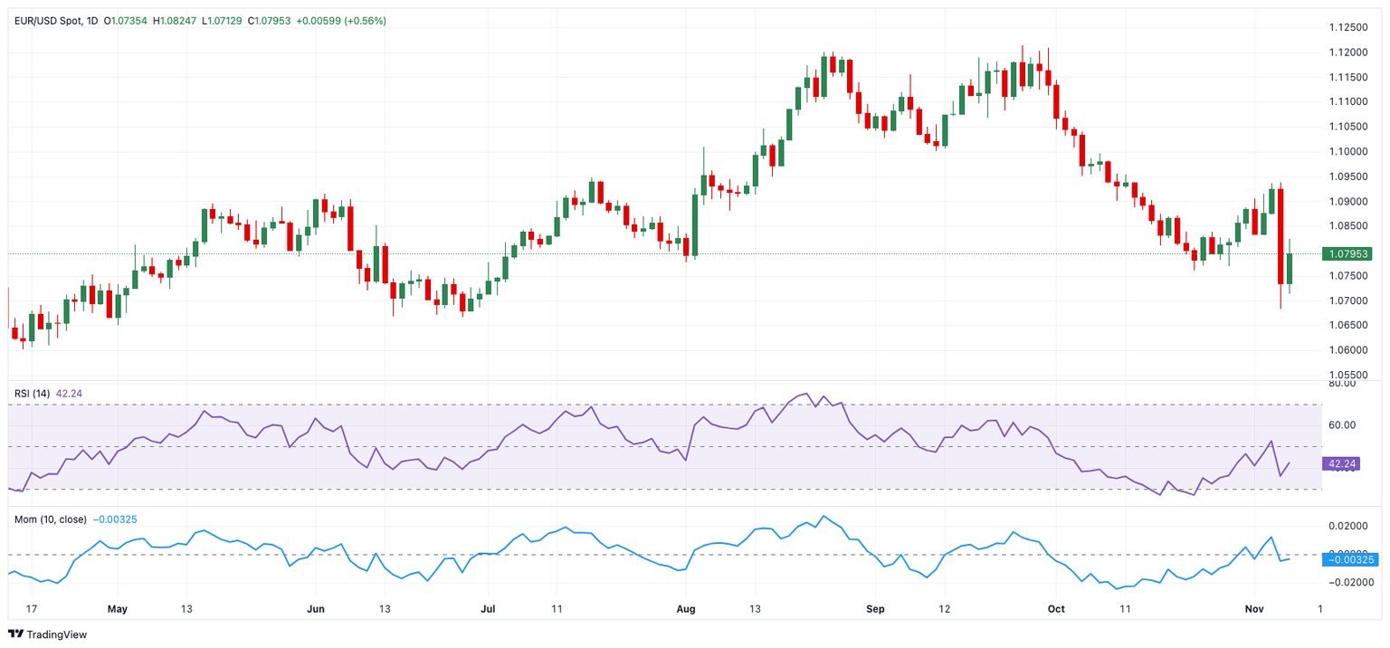 Las pérdidas adicionales pueden hacer que el EUR/USD vuelva a visitar el mínimo de noviembre de 1.0682 (6 de noviembre), antes del mínimo de junio de 1.0666 (26 de junio).