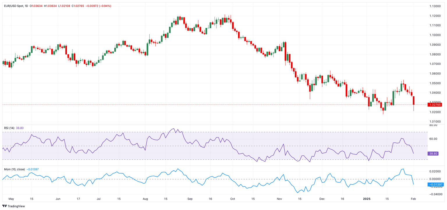 - El EUR/USD cayó repentinamente a mínimos de tres semanas cerca del soporte de 1.0200.