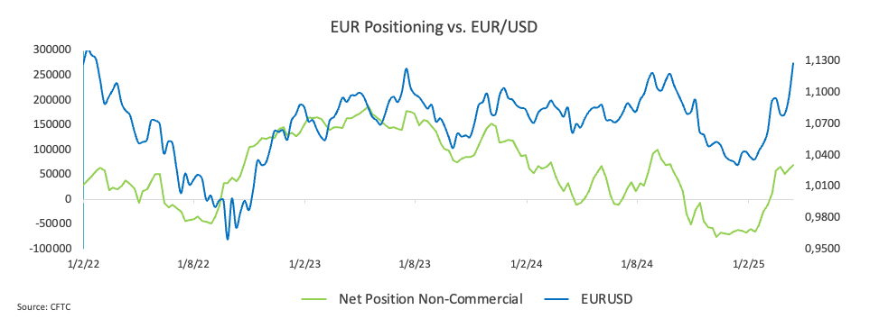 Las posiciones largas netas especulativas en el Euro aumentaron a aproximadamente 69.3K contratos en la semana hasta el 15 de abril, marcando su nivel más alto desde septiembre de 2024. Los operadores institucionales, mientras tanto, aumentaron sus posiciones cortas netas a casi 118K contratos, alcanzando también máximos de varios meses. Además, el interés abierto superó los 708K contratos, un máximo de cinco semanas.