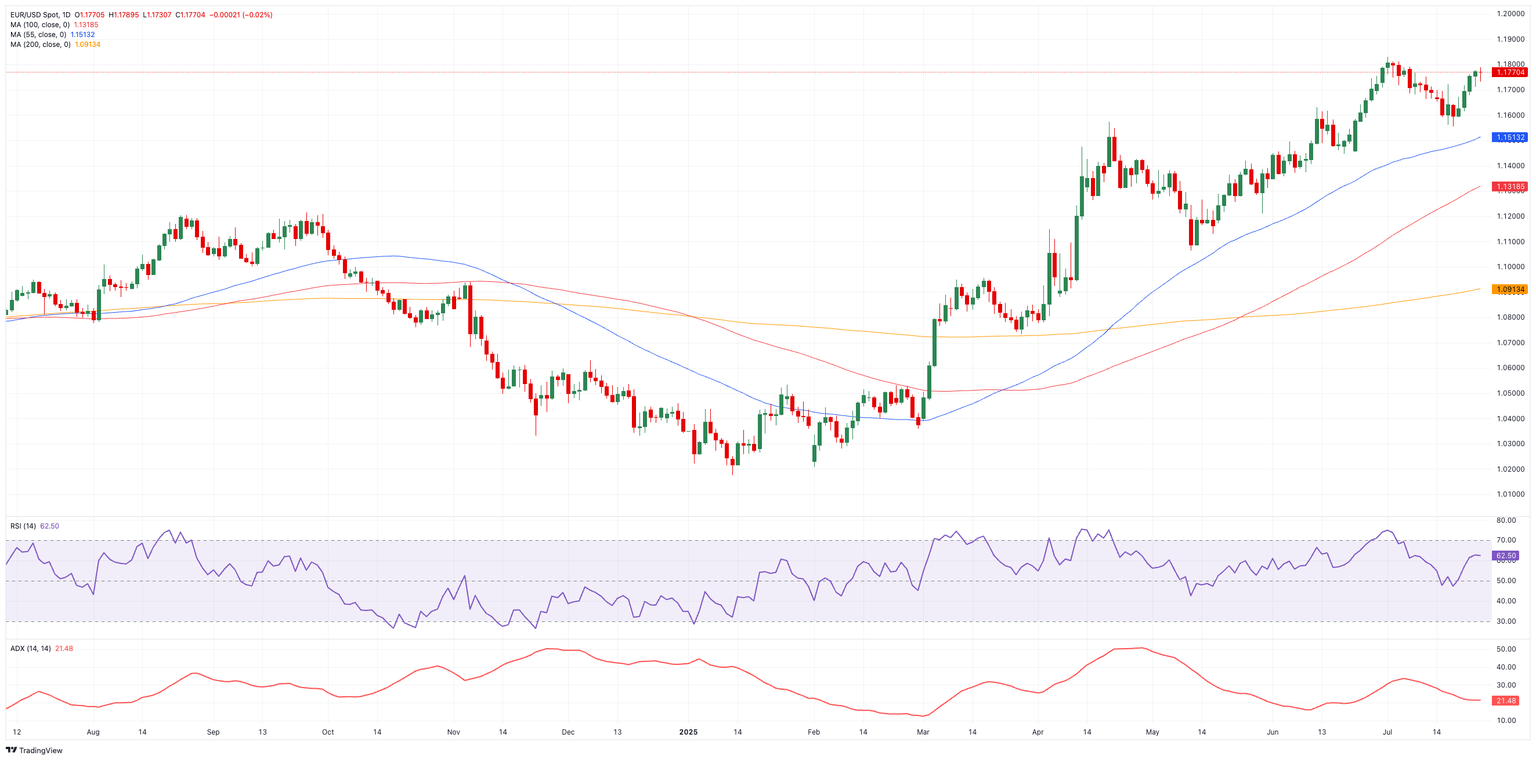 El avance del Euro se desarrolla en un contexto de incertidumbre arancelaria y caminos de política divergentes. Un cambio en la postura de Washington sobre el comercio, o una sugerencia de que la Fed podría cambiar de rumbo primero, podría proporcionar al Euro un nuevo impulso. Hasta entonces, los alcistas del Euro están atentos a la fecha límite de aranceles del 1 de agosto y a la resistencia en 1.1830 en busca de pistas sobre el próximo movimiento del par.