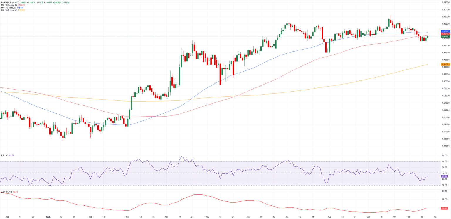Por el contrario, la continuación de la recuperación enfrenta un obstáculo intermedio en la SMA de 55 días en 1.1678, antes del techo de octubre en 1.1778 (1 de octubre), y el máximo de 2025 de 1.1918 (17 de septiembre).