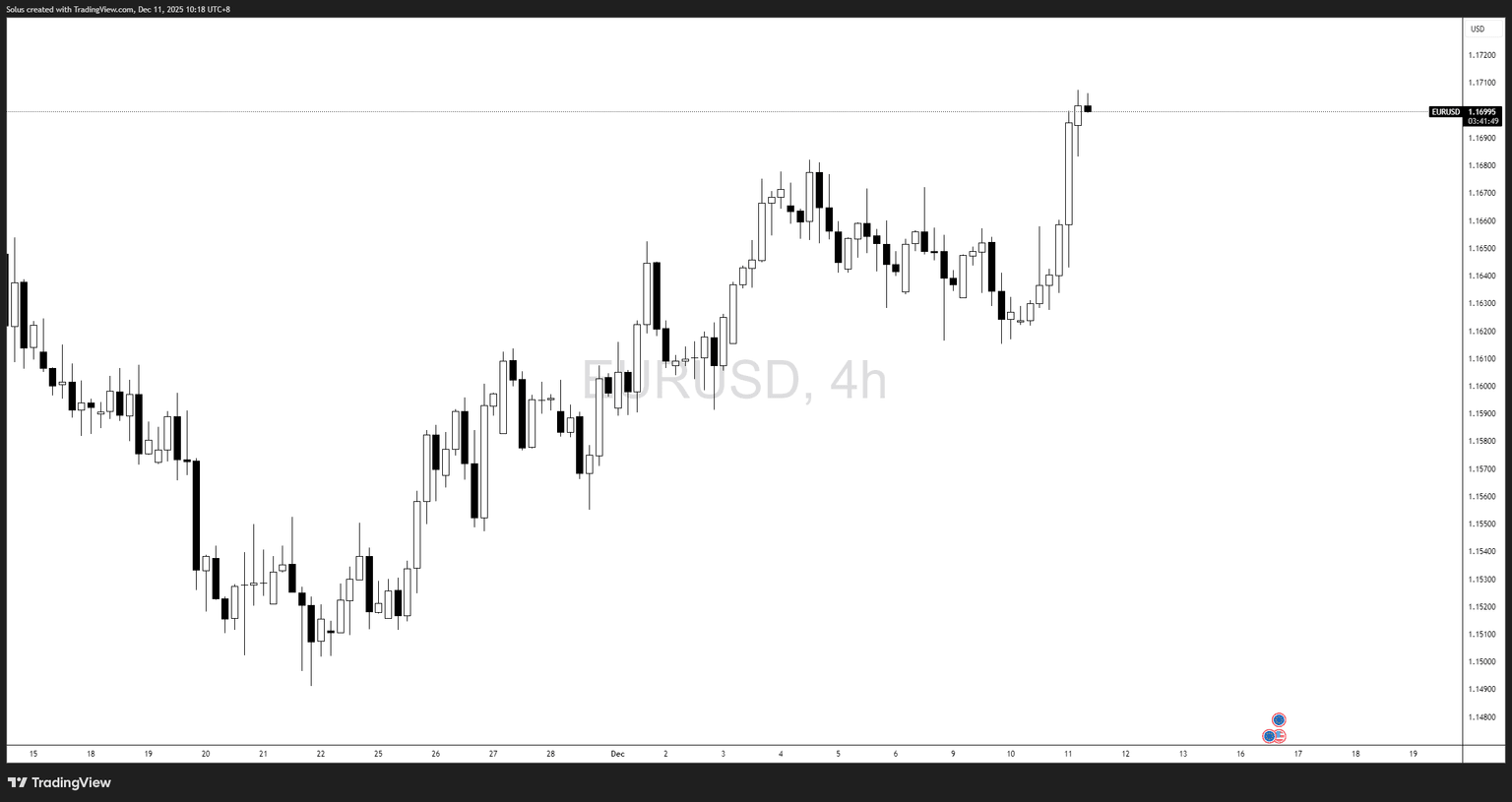 El EUR/USD se negoció bruscamente al alza tras el recorte de tasas de diciembre de la Reserva Federal, un movimiento que los mercados financieros habían anticipado en gran medida—pero la reacción muestra que el tono de la conferencia de prensa de Powell tuvo aún más peso.
