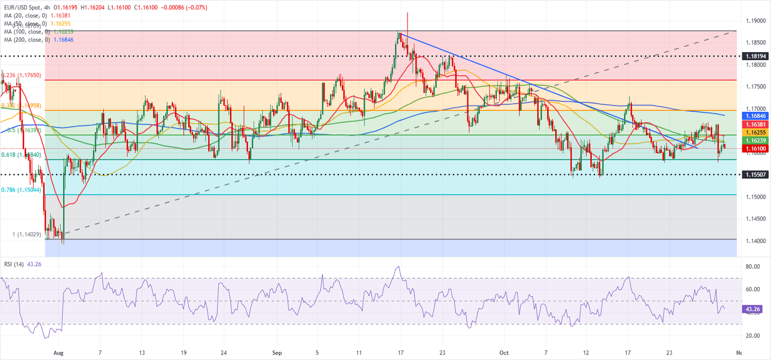 Se anticipa ampliamente que el BCE mantenga sin cambios las tasas de referencia el jueves. Antes de los anuncios de política del BCE, se presentarán los datos preliminares de crecimiento del Producto Interno Bruto (PIB) para la Eurozona en el calendario económico europeo. Los mercados esperan que la economía de la Eurozona se expanda a un ritmo trimestral del 0.1% en el tercer trimestre. Un dato negativo podría reavivar las expectativas de un recorte de tasas del BCE en diciembre y presionar al Euro con la reacción inmediata.
