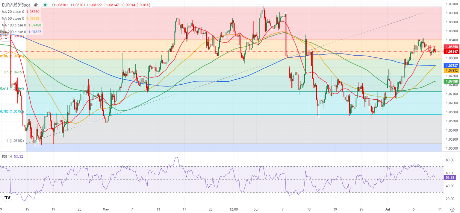El EUR/USD cerró ligeramente a la baja el martes, pero no tuvo dificultades para mantenerse por encima de 1.0800. La perspectiva técnica a corto plazo del par muestra una falta de impulso direccional.