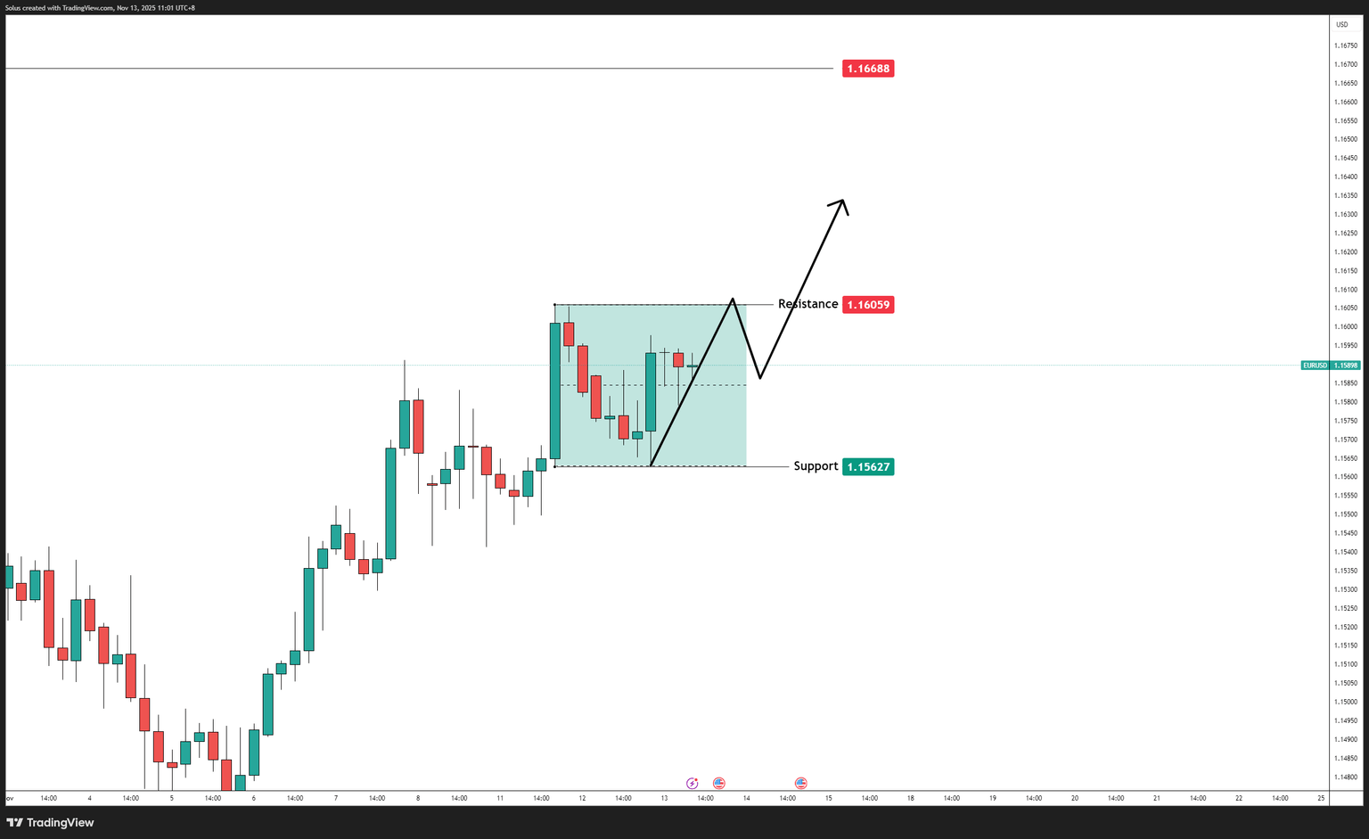 Una ruptura podría abrir el camino hacia el bolsillo de liquidez en 1.16350 y, en última instancia, 1.16688.